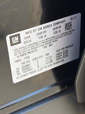 CARFAX One-Owner. Clean CARFAX. Mosaic Black Metallic 2021 Chevrolet TrailBlazer LT FWD CVT 1.3L Ecotec Turbo DOHC SIDI w/VVT ***ONE OWNER***, ***CLEAN CARFAX***, ***BLUE TOOTH***, ***FREE CARFAX***, ***BACKUP CAMERA***, ***POWER SEAT***, ***HEATED SEATS***, TrailBlazer LT, 4D Sport Utility, 1.3L Ecotec Turbo DOHC SIDI w/VVT, CVT, FWD, Mosaic Black Metallic, Jet Black w/Cloth Seat Trim.